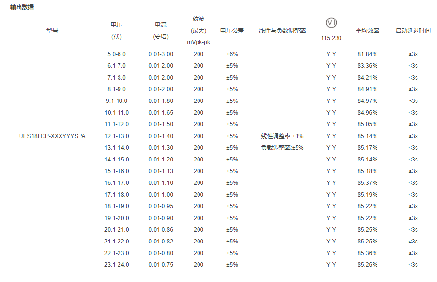 UES18LCP是一款可换挺插脚的高能效插墙式医疗电源,采用OB2362最新技术解决方案,可出色待机功耗≤0.075W可满足6级能效、欧盟CoC Ver 5 tier 2标准;